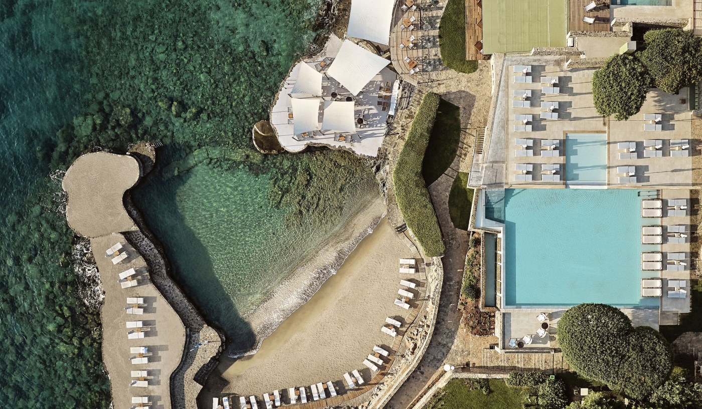 Framing a tranquil cove with spectacular views of the azure Aegean Sea, this boutique, all-suite hotel is a modern interpretation of a Greek coastal village. Its elegant sweep of whitewashed suites and villas make the most of their surroundings with private saltwater pools and picturesque terraces.