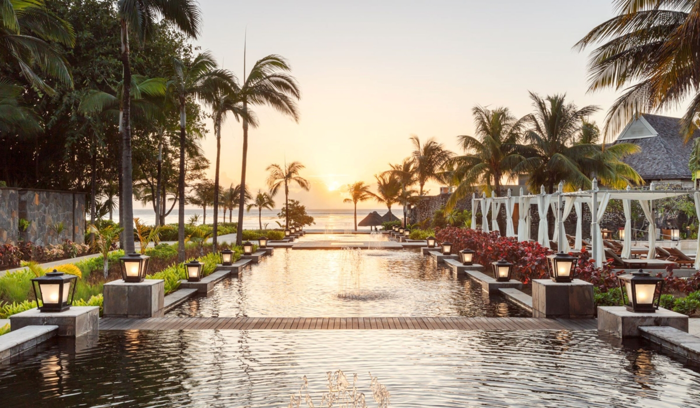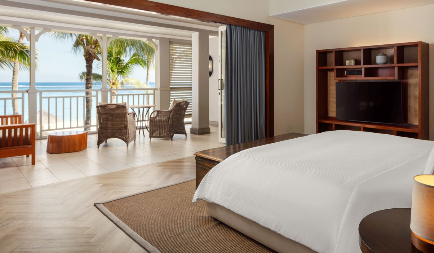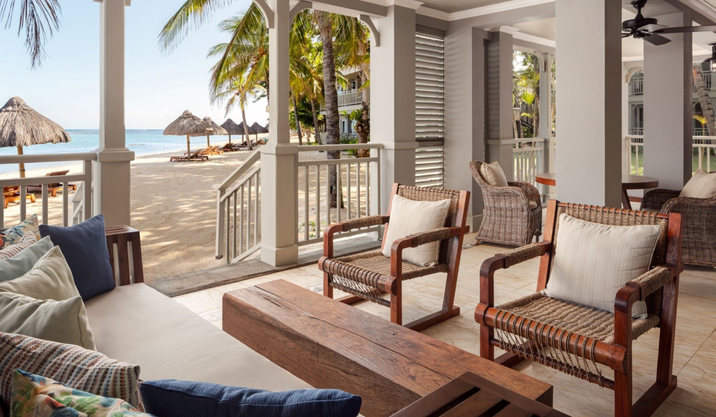 At 1,650 square metres, the four-bedroom Grand Beachfront Villa is the largest in Mauritius, set in lush tropical greenery with private access to the beach