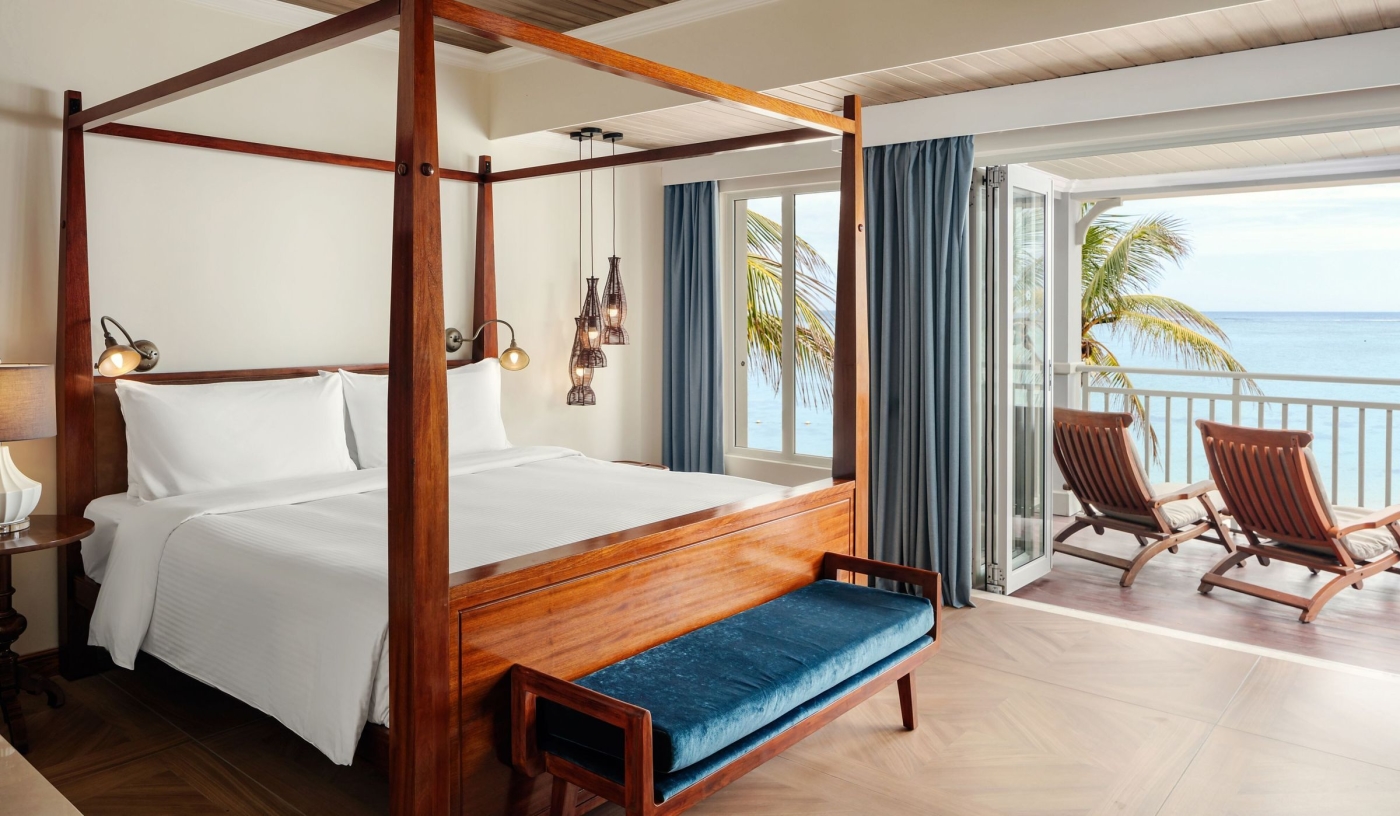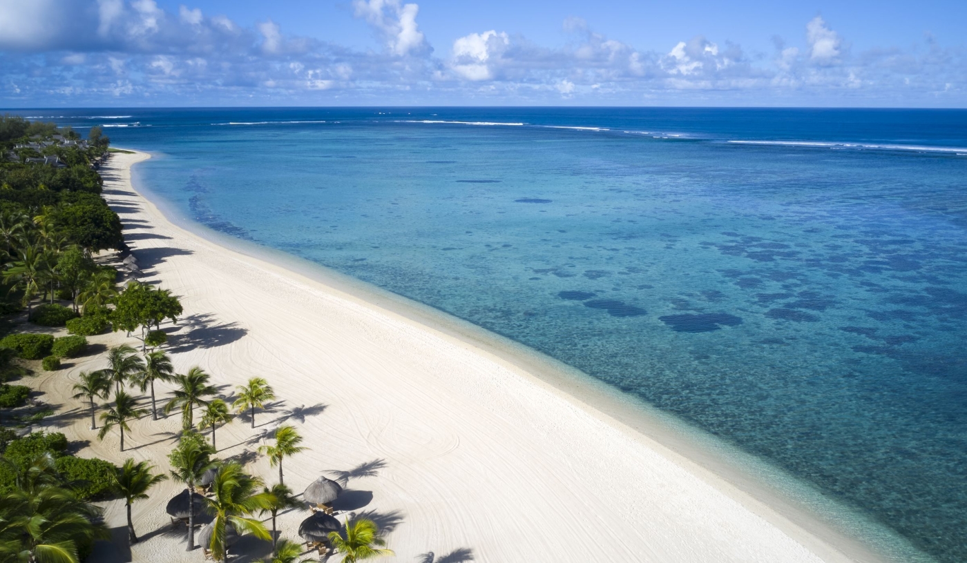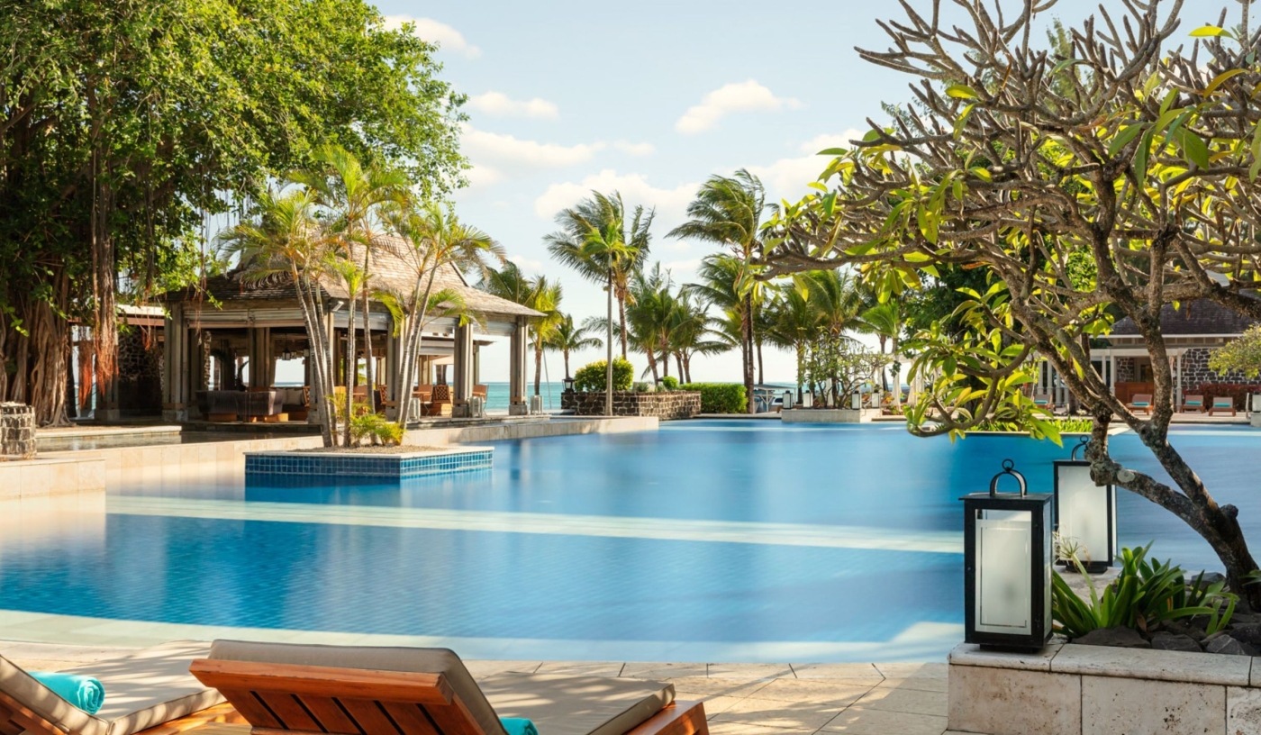 At 1,650 square metres, the four-bedroom Grand Beachfront Villa is the largest in Mauritius, set in lush tropical greenery with private access to the beach