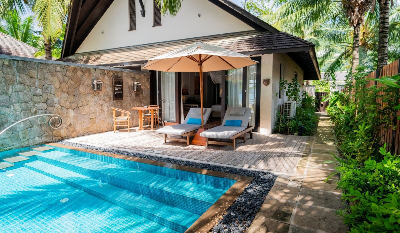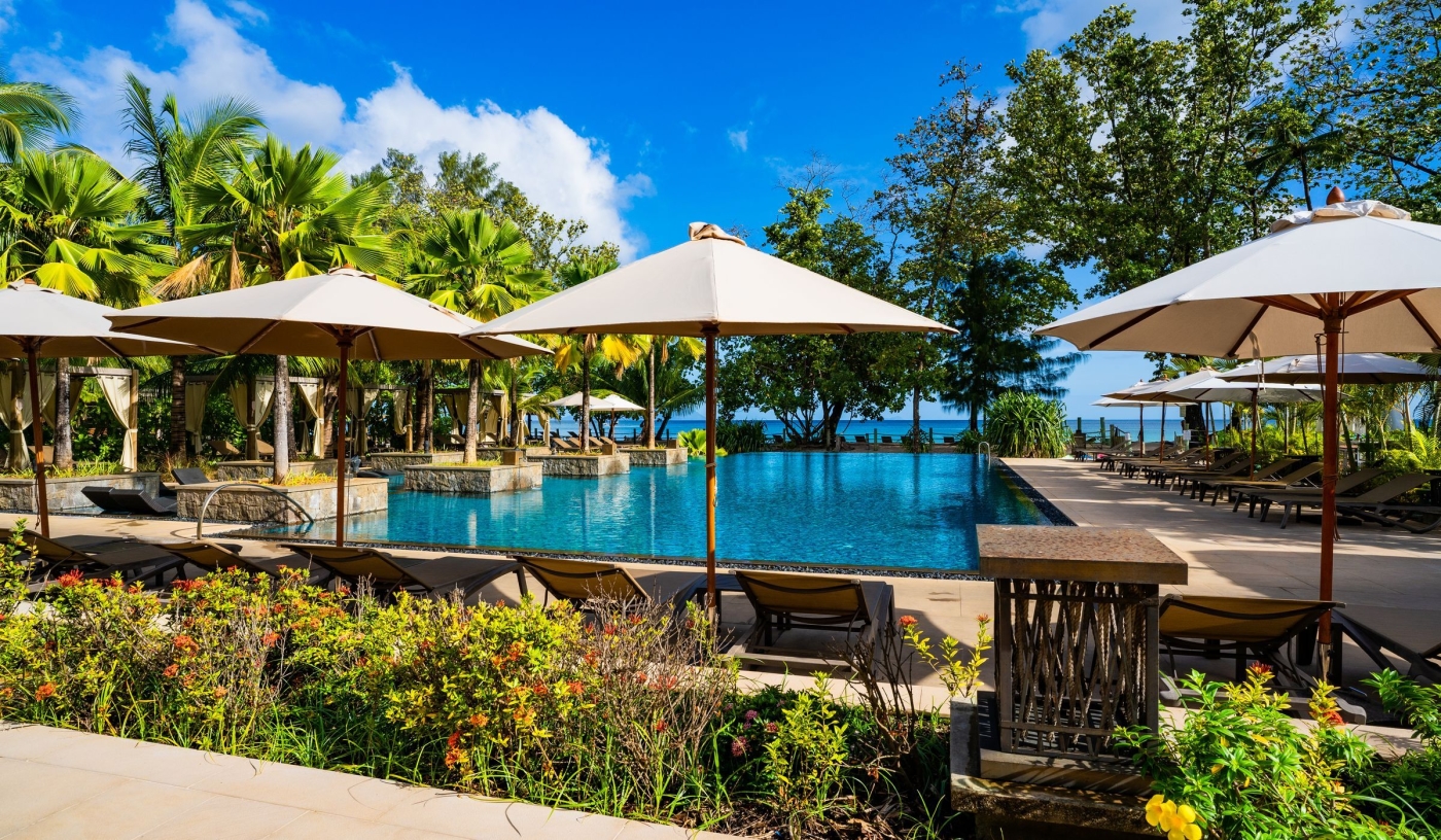 A huge central swing-bed suspended from the rafters of the soaring reception atrium sets a cool, breezy tone for this luxurious resort set on the long sweep of Beau Vallon beach, just 30 minutes from the airport on Mahé and 10 minutes from the capital, Victoria.