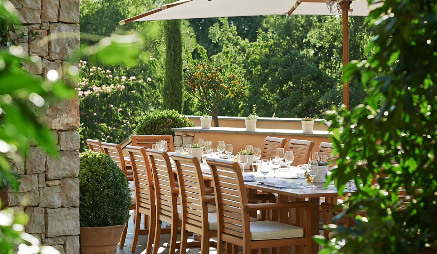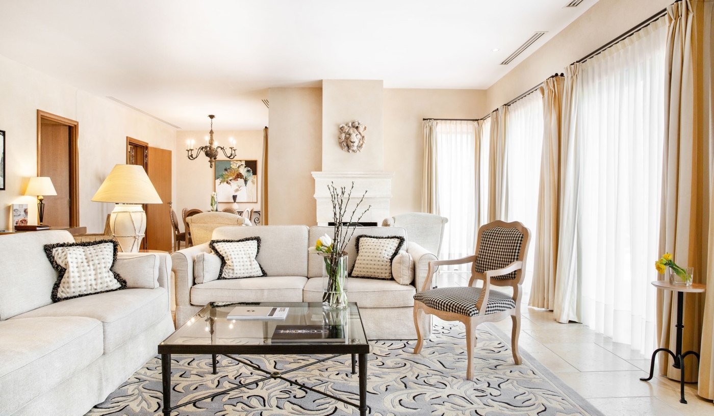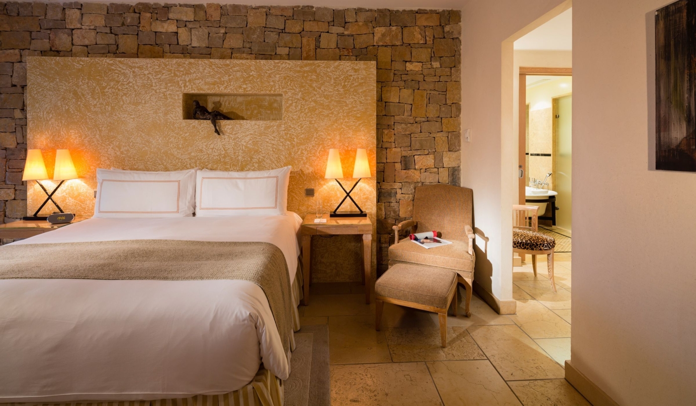 Suites and villas feel completely private, with spacious living areas, marble bathrooms and terraces overlooking the countryside.