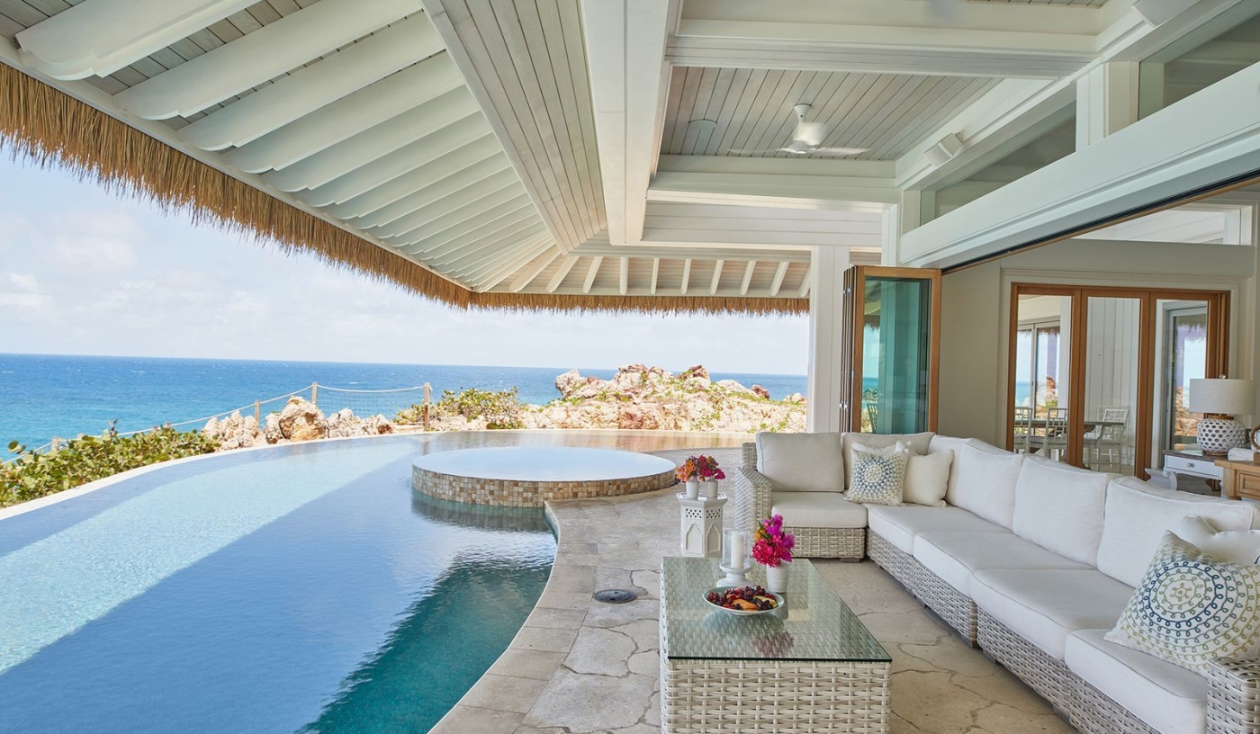 Each villa features its own kitchen, lounge area, infinity pool and hot tub, while tying the estate together is a gorgeous private beach, complete with beach bar and dining area.