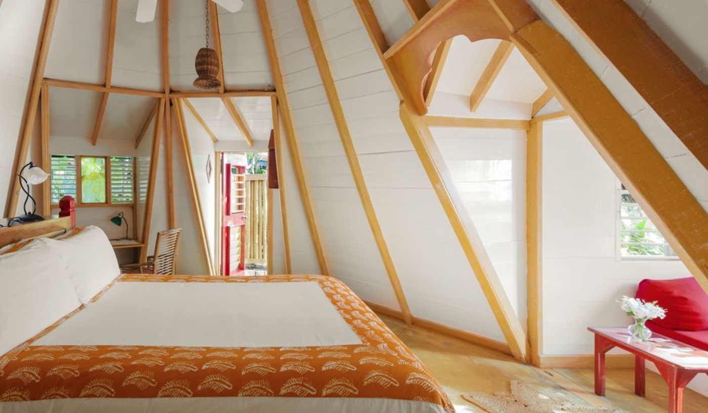 Custom-designed cottages, some with outdoor showers and mini kitchens, are set in jungle-like gardens at the top of the cliffs and come with complimentary mini bars.