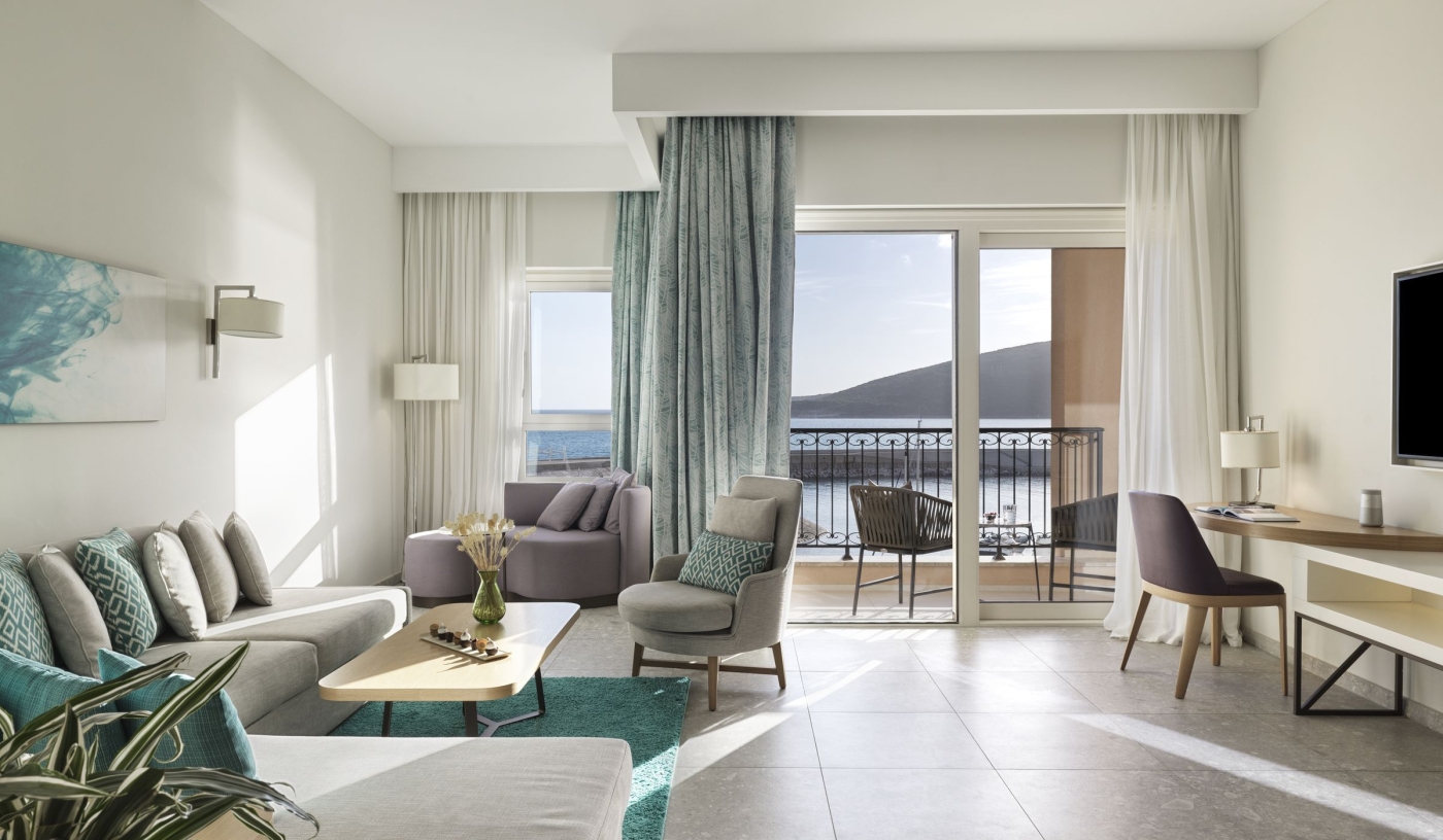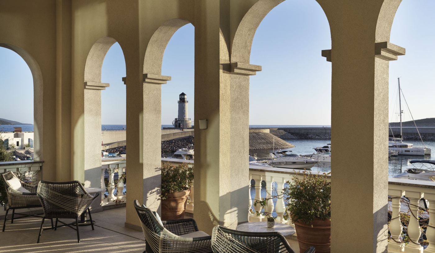 Light-filled rooms and suites all come with balconies and sweeping views of the marina, Trašte Bay and the shimmering Adriatic beyond.