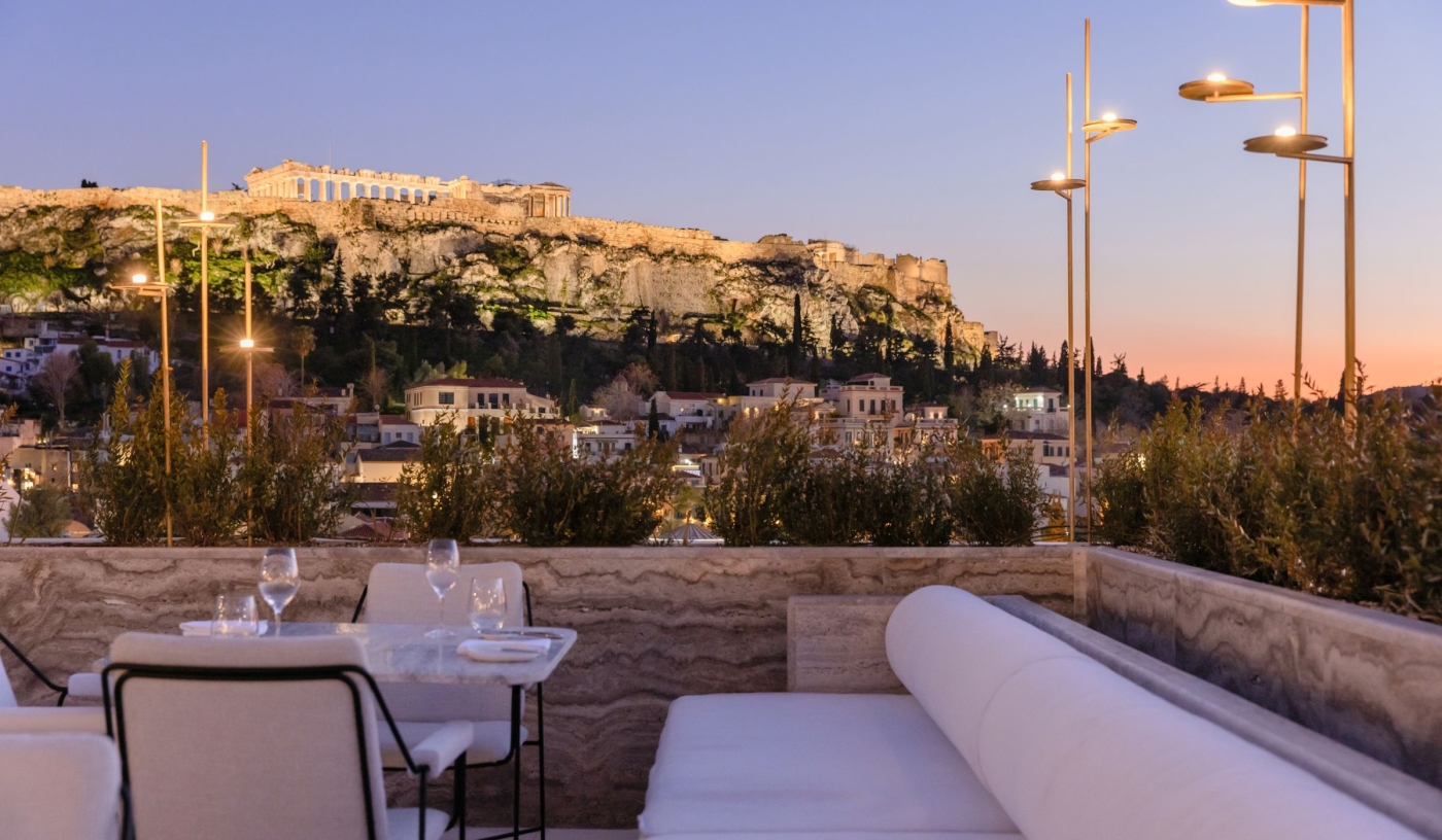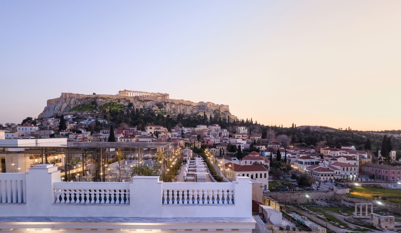 A rooftop bar, restaurant and poolside lounge provide a relaxed setting with uninterrupted views of ancient Athens.