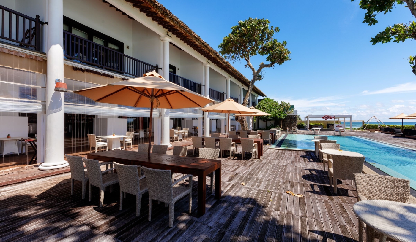 Dining covers Sri Lankan dishes, seafood and Mediterranean options, supported by a carefully kept wine cellar and relaxed poolside settings