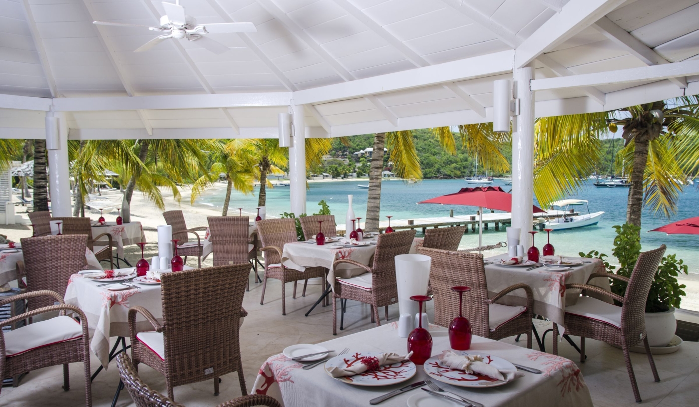 Dine on the beach at Reef Restaurant by day or savour candlelit fine dining with sweeping harbour views at The Terrace by night
