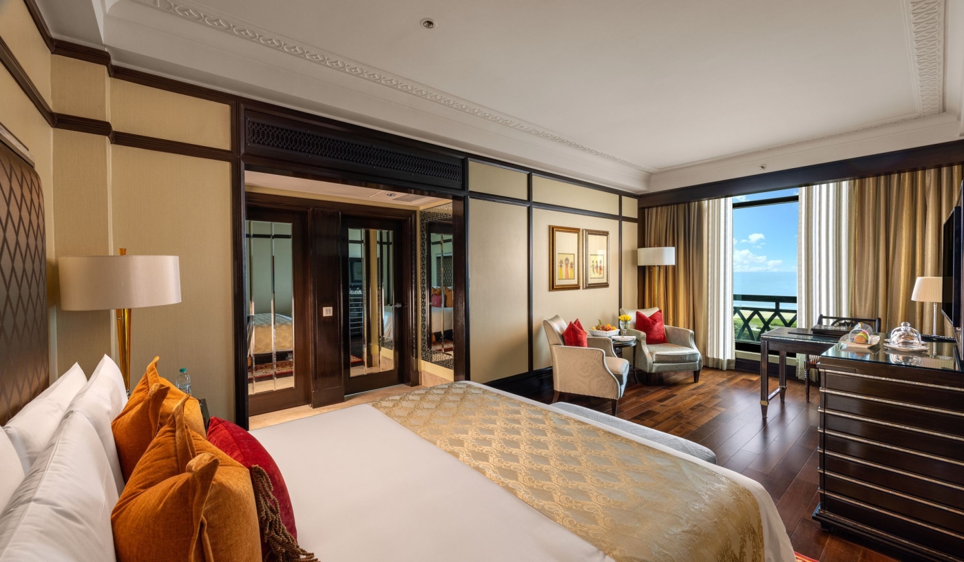 Overlooking the Bay of Bengal, The Leela Palace Chennai is a striking blend of Dravidian architecture and contemporary elegance, with opulent sea-facing rooms, fine dining, a holistic spa and impeccable service.