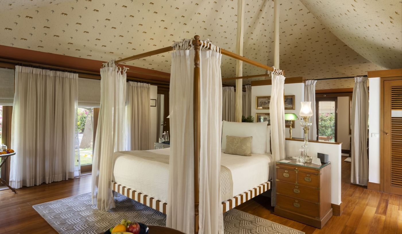 Stay in elegant, air-conditioned tents with teak floors and colonial-style furnishings