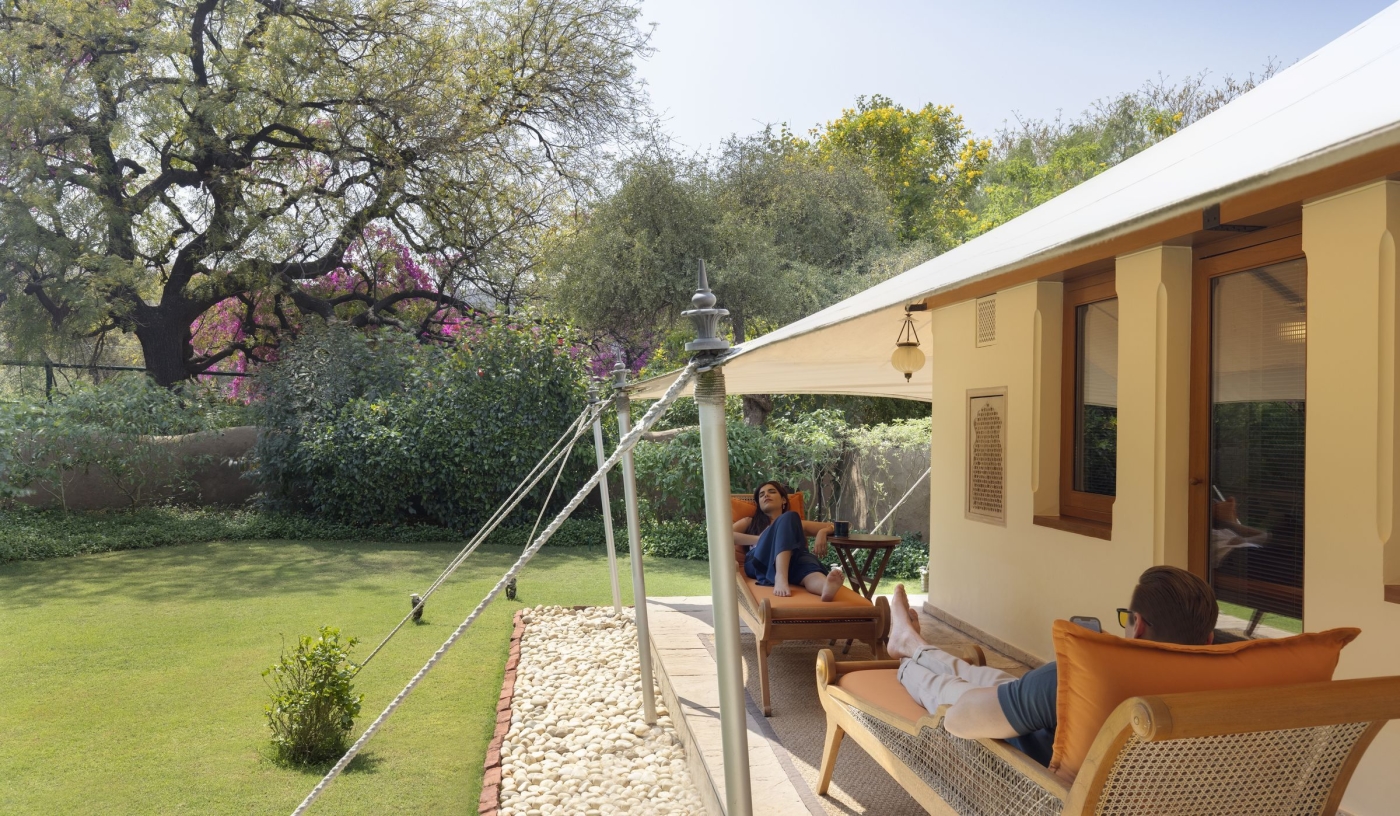 Tucked among the Aravalli Hills, Amanbagh is a lush, rose-hued oasis built on the grounds of a former Mughal hunting lodge, where domed pavilions, serene courtyards, Ayurvedic rituals and immersive cultural journeys offer a deeply restorative escape into rural Rajasthan.