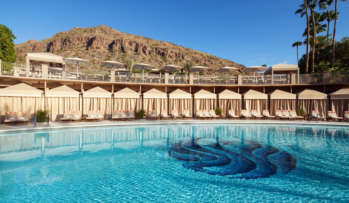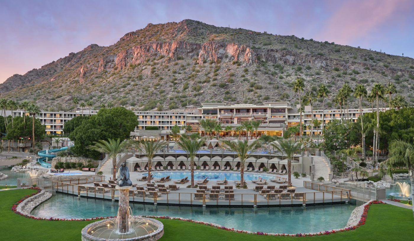 Set at the base of Camelback Mountain, the resort boasts views across desert landscapes and the city below.