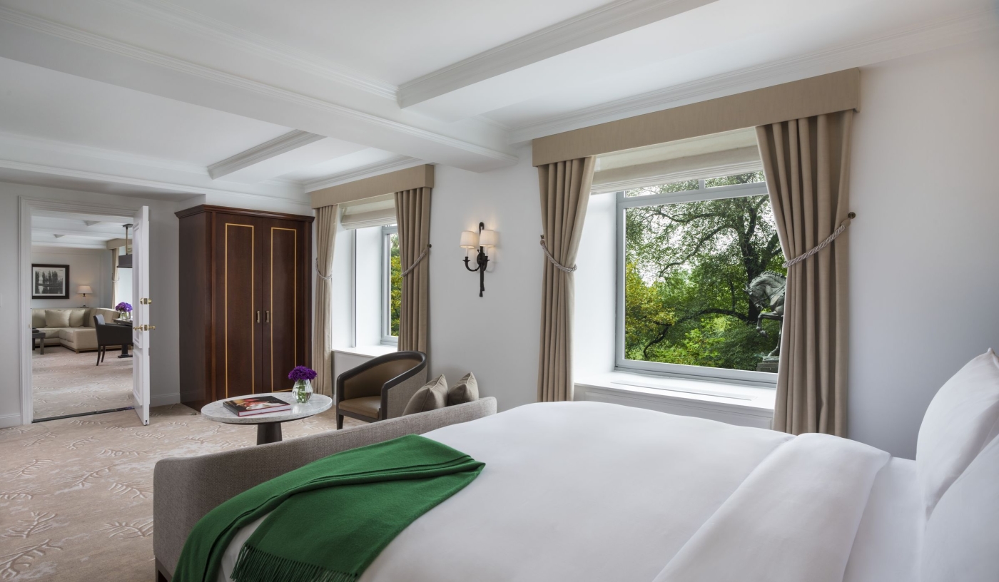 Newly redesigned rooms and suites feature townhouse-inspired interiors, with many framing views across Central Park.