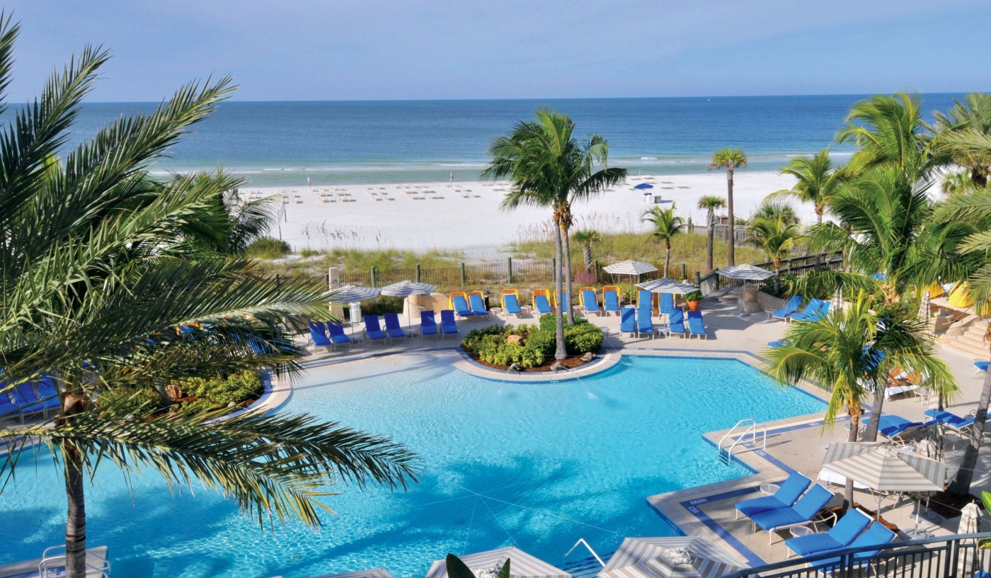 The hotel’s private Beach Club on Lido Key is reached by shuttle and offers quiet Gulf-front sands and a dedicated pool.