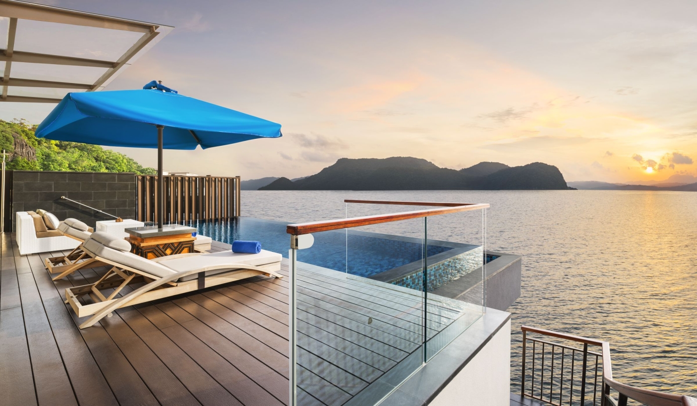 Surrounded by lush rainforest and the serene Andaman Sea, enjoy elegant suites and four-bedroom over-water villas with beach access and stunning sunset views