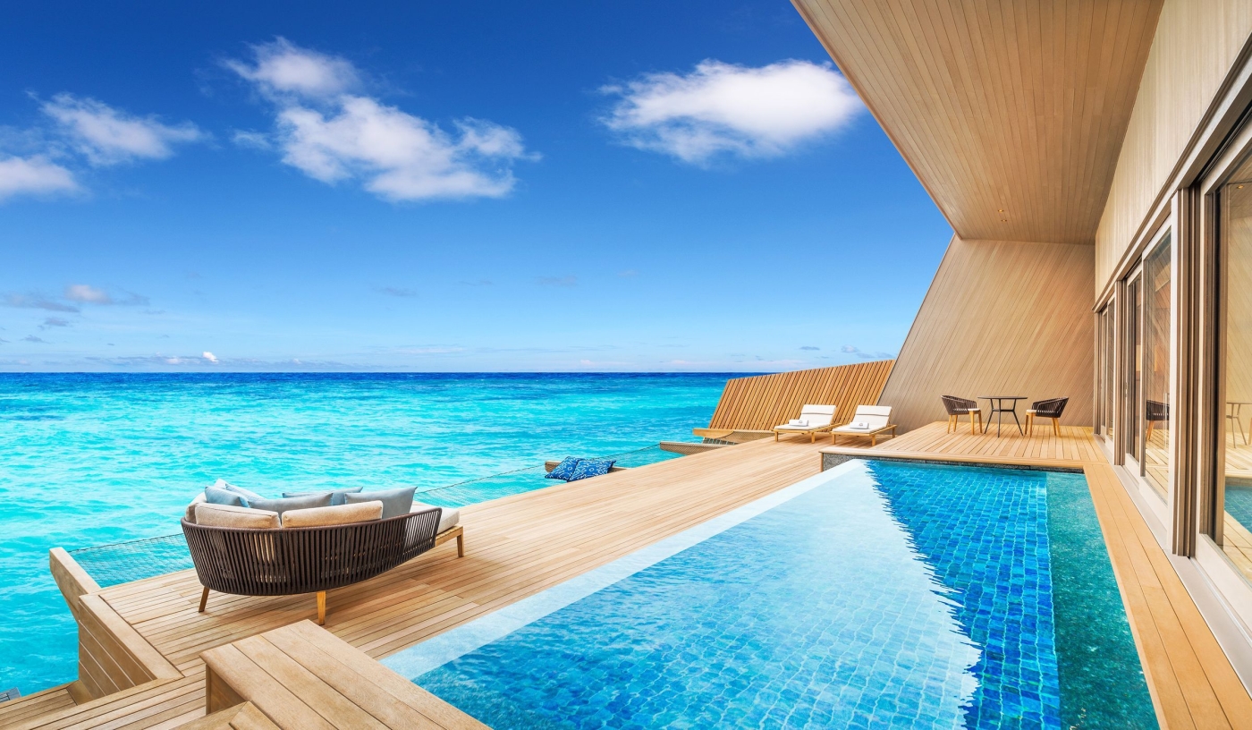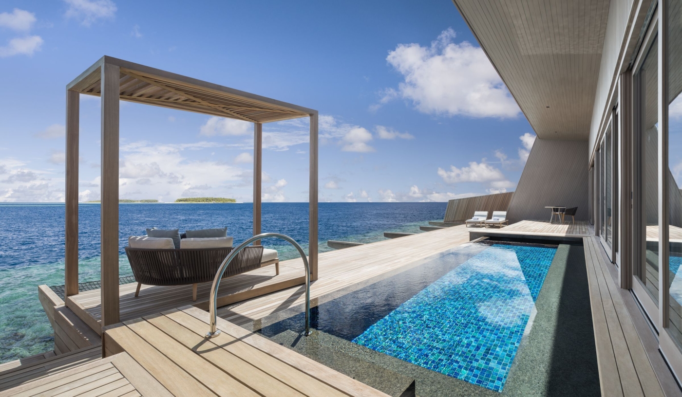 Choose from 33 beach and 44 overwater villas, including two-bedroom villas ideal for families and the palatial John Jacob Astor Estate, the largest three-bedroom overwater villa in the Maldives