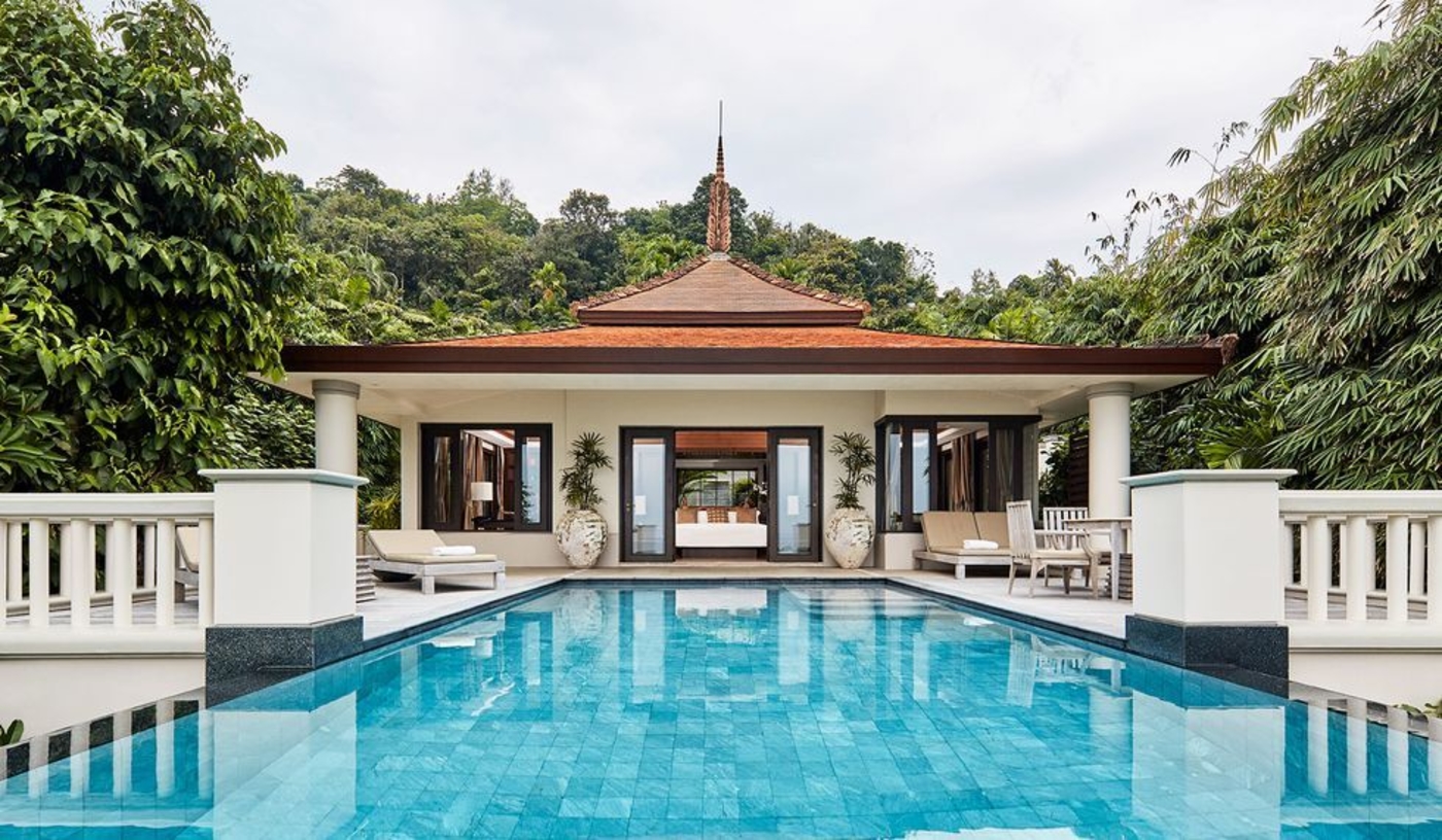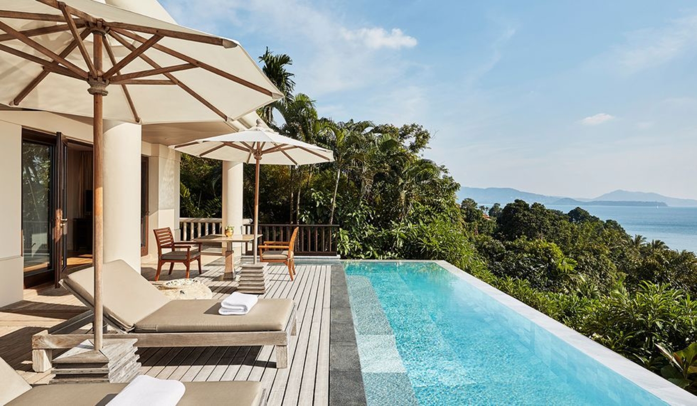 Every villa includes a marble-floored infinity pool and secluded terrace facing the Andaman Sea