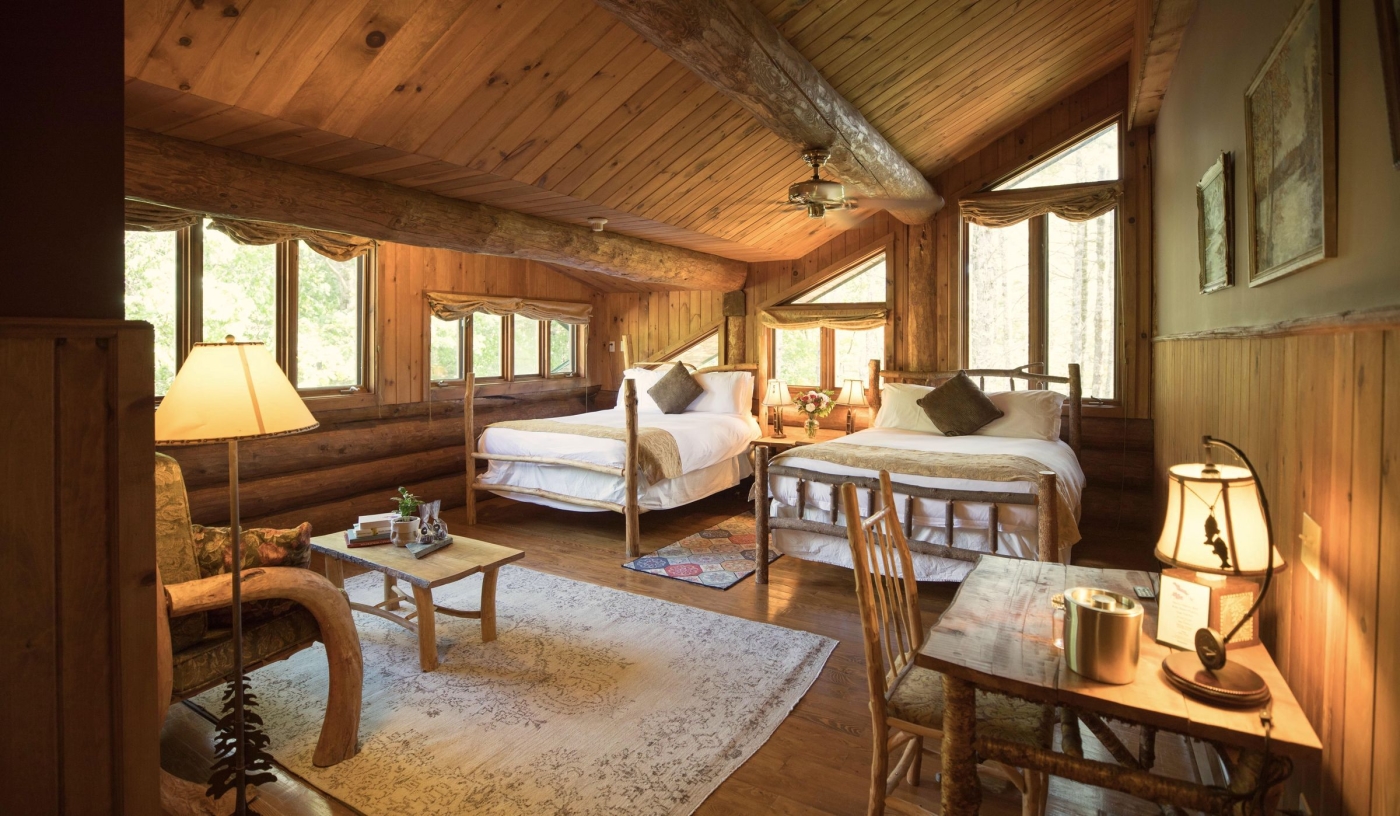 Individually styled rooms and chalets blend handcrafted detail with comfort, offering a peaceful retreat surrounded by forest and river