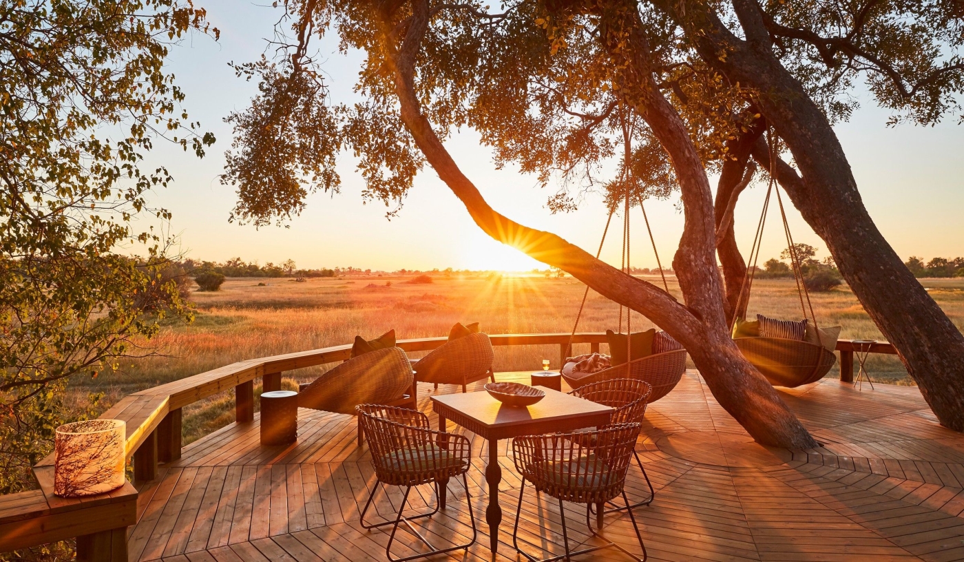 A luxurious lodge located on a private concession in the Okavango Delta, adjacent to the wildlife-rich Moremi Game Reserve.