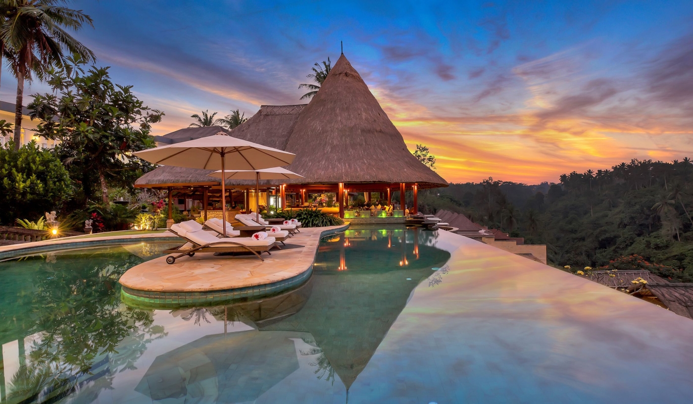 Viceroy Bali is a family-run, all-villa retreat perched above a lush river valley close to the centre of Ubud. Each of the 40 villas offers a private heated pool, elegant Balinese design, and tranquil gardens. Enjoy panoramic valley views, luxurious amenities, and warm, personalised service in a serene oasis.
