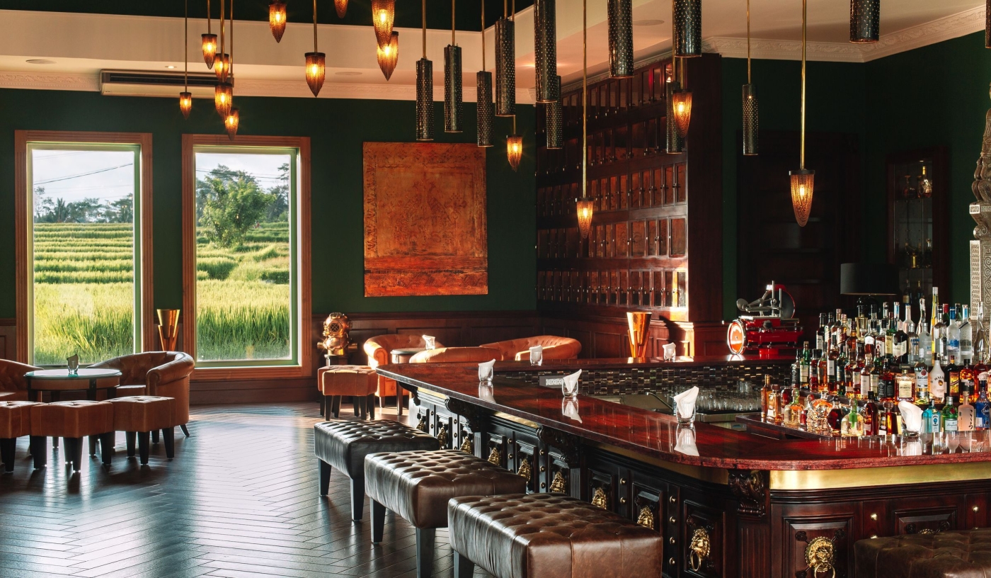Akoya Spa, a gym, and the Pinstripe cocktail bar provide wellness, fitness, and stylish relaxation above the rice fields