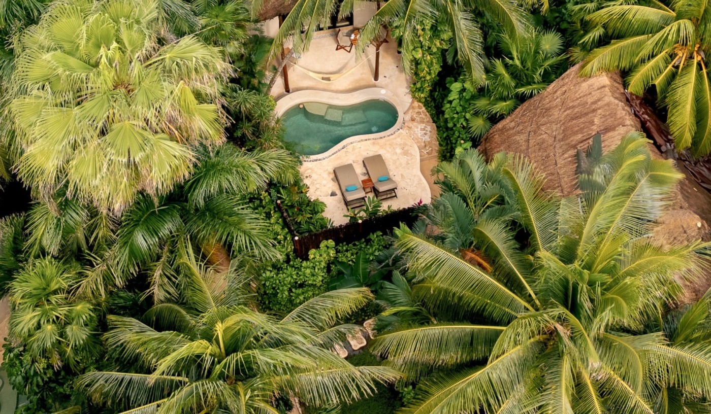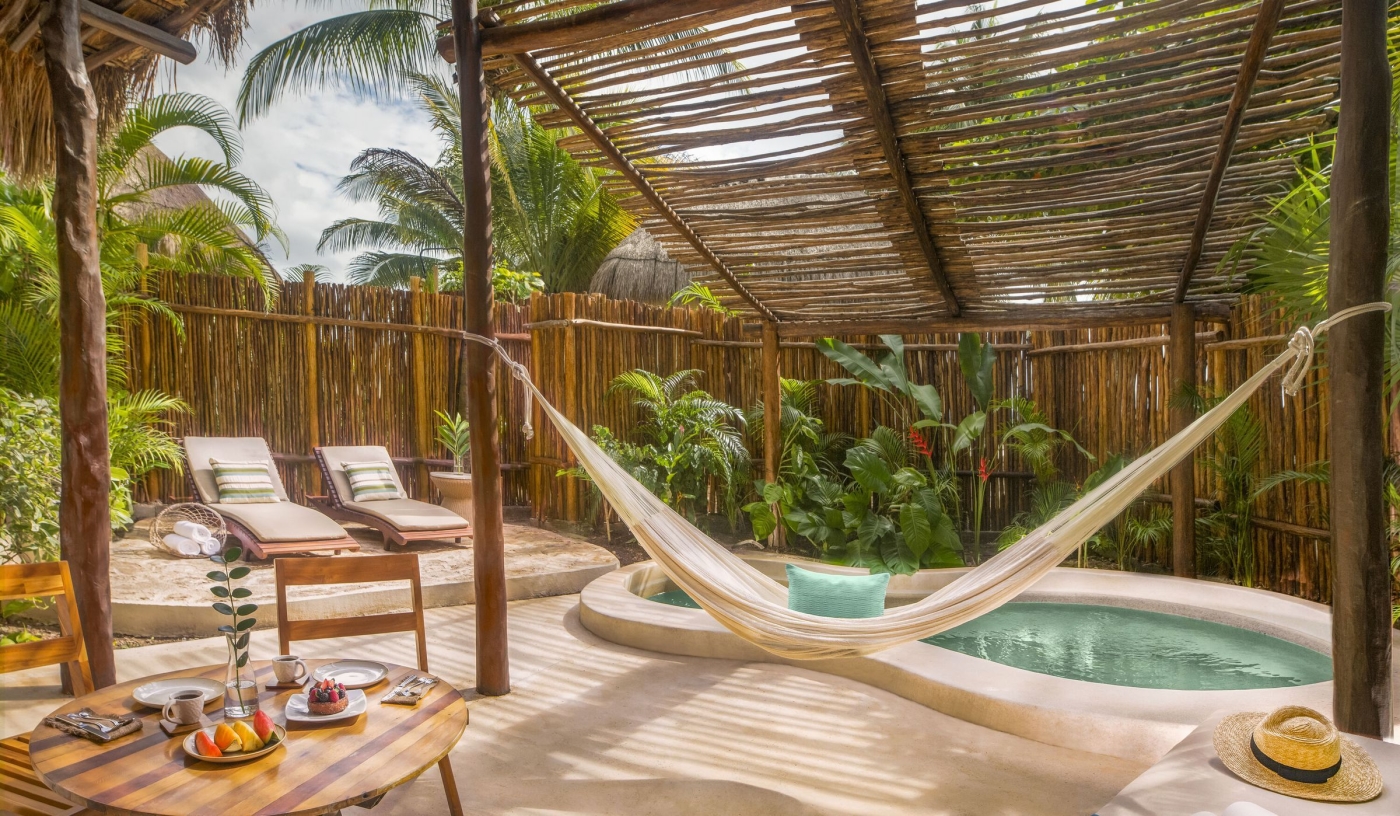 The natural setting and design create a calm, understated atmosphere that reflects the Riviera Maya’s coastal rainforest