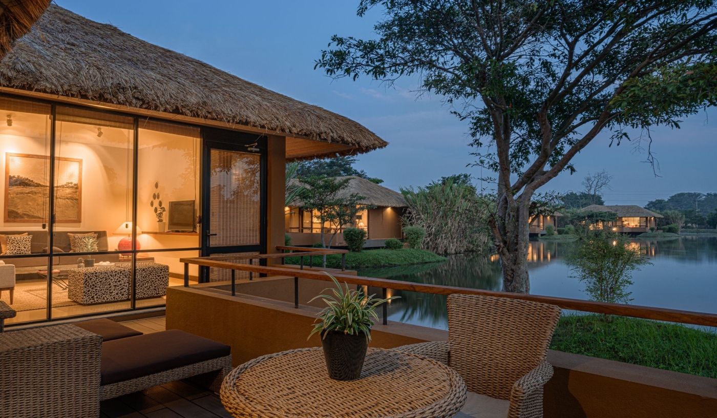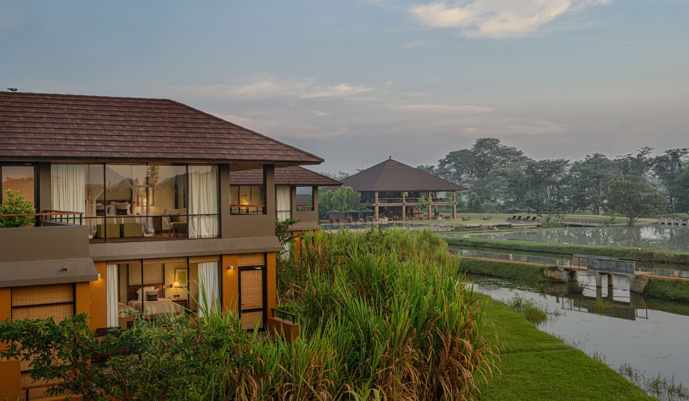 Thirty villas are set among waterways and gardens, some with private plunge pools and two-storey layouts.