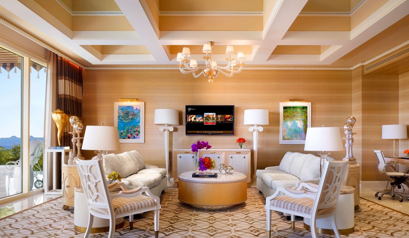 Public spaces feature marble floors, domed ceilings and dramatic floral displays that have become closely associated with the Wynn.