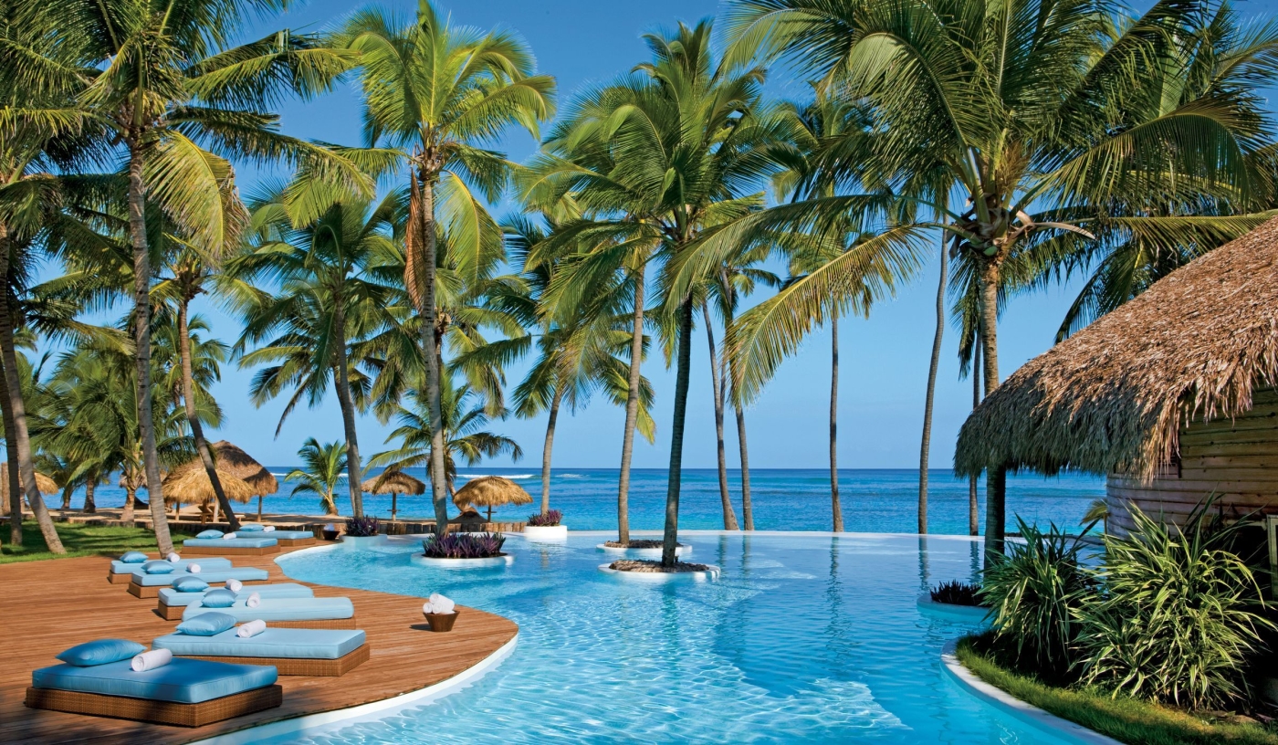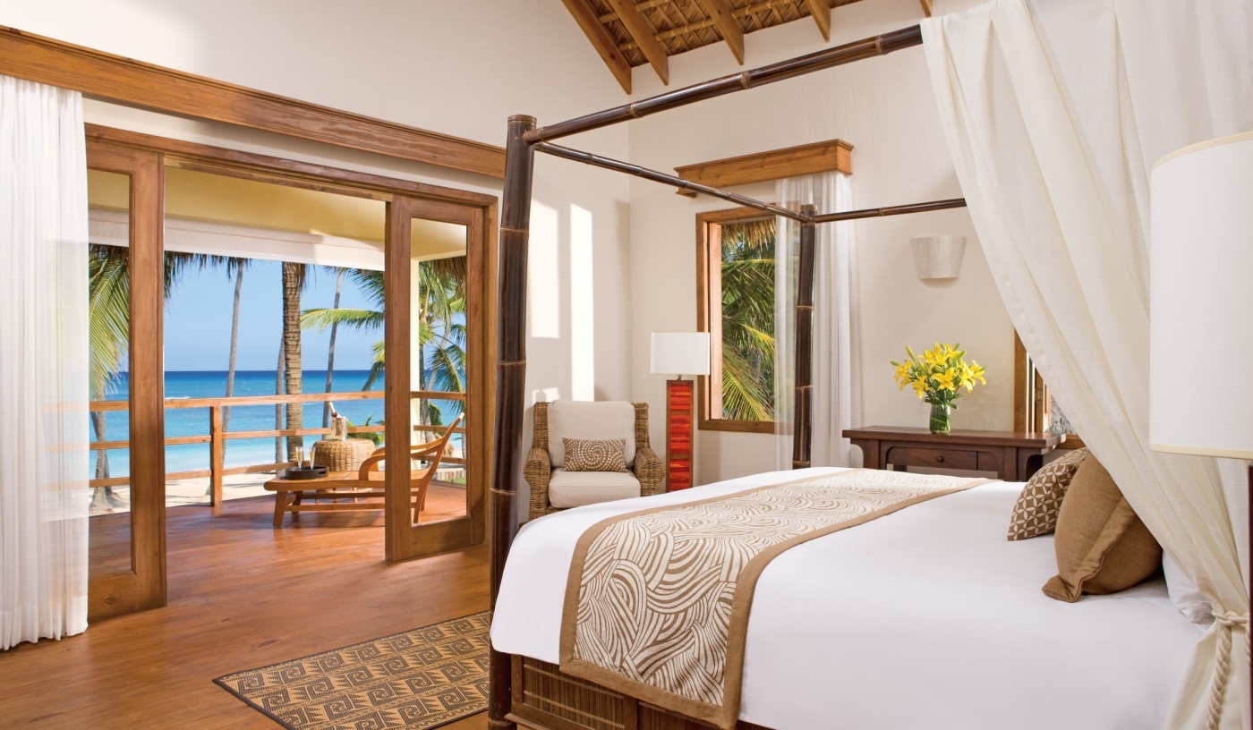 Spacious suites draw inspiration from the indigenous Taino culture, with cane-thatched roofs, cathedral ceilings, teak furniture and balconies or terraces with garden or sea views.