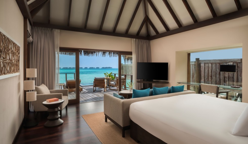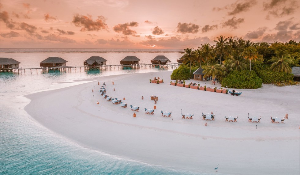 Scattered across the tranquil islands is a collection of luxurious beach and over water villas, spacious Deluxe Beach Villas and Water Villas benefit from private plunge pools, while lavish Retreat Water Villas have private treatment rooms and whirlpools. The two resplendent Sunset Water Villas are the height of luxury, boasting personal Island Host service, speedboat, glass-floored lounges, infinity plunge pools and circular beds rotating 270-degrees to catch those magical Maldivian sunsets.