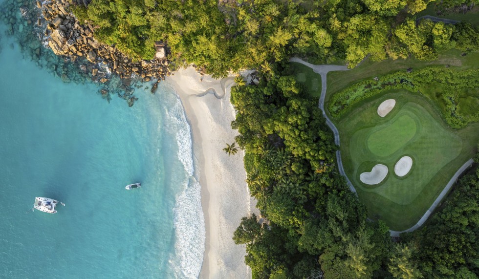 Straddling Praslin’s spectacular Pointe Sainte Marie headland, Constance Lemuria’s secluded 100-hectare property encompasses three beaches, a turtle-nesting site, a triple-level swimming pool and the Seychelles’ only 18-hole championship golf course.