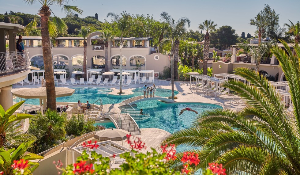 Not only is Il Castello one of the most luxurious hotels in the Forte Village portfolio, it’s also the most traditionally Sardinian in design, with an exterior hewn from the island’s red stone and a wide range of rooms that are simple but elegant, combining a cream and white palette with splashes of turquoise, hand-woven rugs and local ceramics.