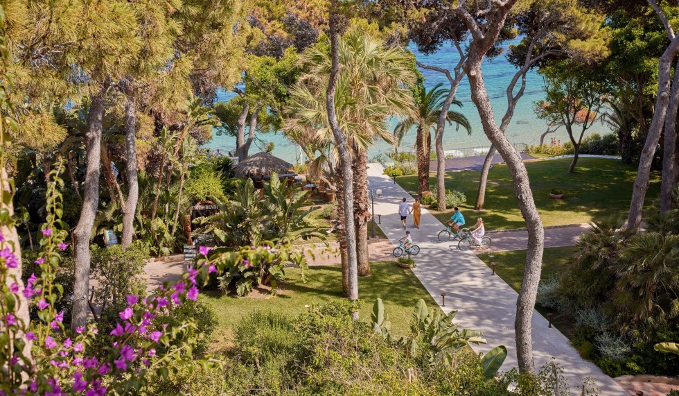 Rooms are spread over two floors in a horseshoe shape overlooking an airy courtyard. On the first floor, Superior Terrace Rooms boast private balconies with garden views and are ideal for couples or families with a young child or baby. Larger Deluxe Family Rooms are on the ground floor and feature a patio and private garden. Some have a small second bedroom; others can be connected to make larger family units.