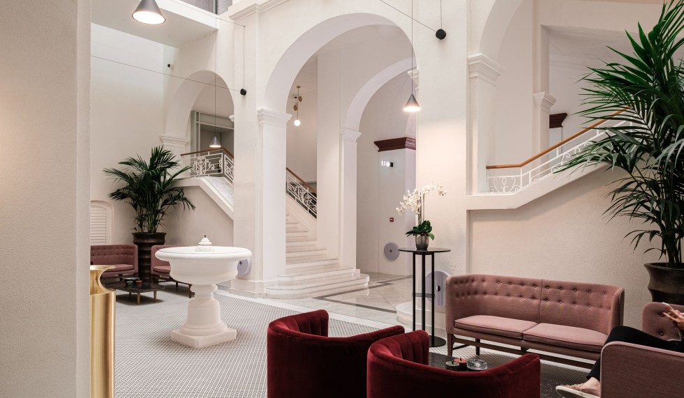 The 25 rooms and suites are divided into six categories and ultra-modern in their design. Each is different with designer flourishes ranging from monochromatic colour schemes and large floral-print wallpapers to chequered marble floors and freestanding bathtubs. Some suites even come with their own private sauna and meditation terrace, while all offer access to the hotel’s pleasant rooftop terrace, complete with deckchairs, bar, restaurant, plunge pool and panoramic views.