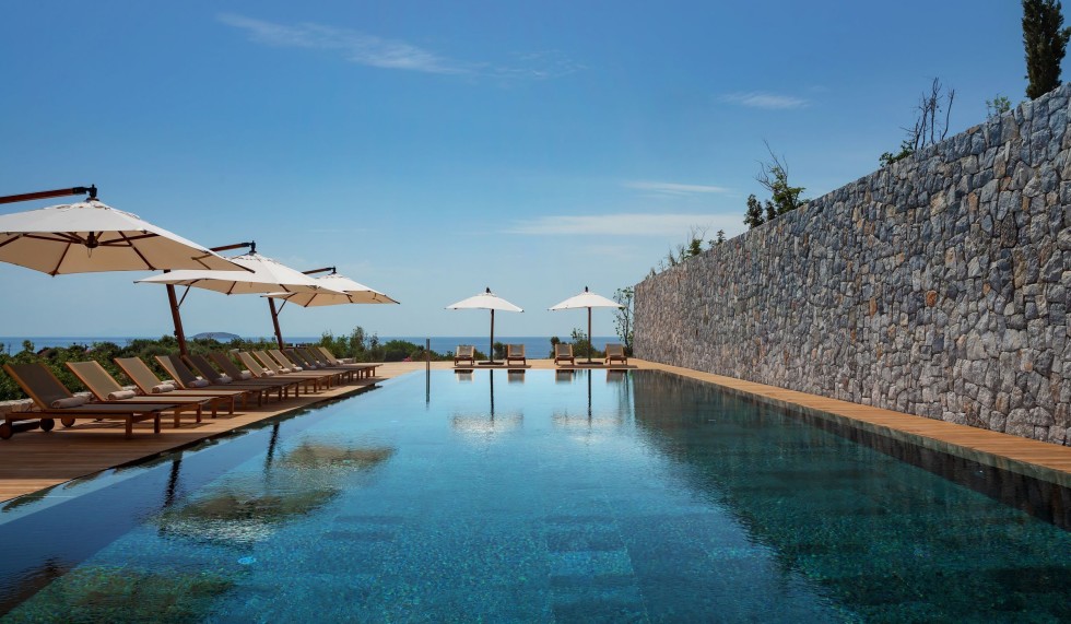 Charming pathways lead to the 141 rooms and suites that are dotted throughout the expansive property, creating a Mediterranean village-style atmosphere. Guestrooms radiate an elegant simplicity, leading to balconies overlooking the Aegean Sea, while the Ridge Terrace Rooms have an optional private pool and terrace. For those seeking added space and seclusion, stylish residences feature three to five bedrooms and come complete with living areas, kitchens, gardens and a pool to create private oases of their own.