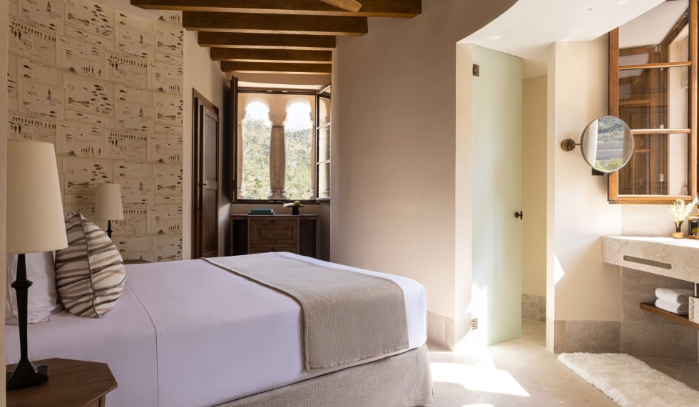 The island’s verdant north-west coast sets the stage for this striking 16th-century finca, which has been thoughtfully modernised to marry new design with existing historical elements such as wooden carpentry, stone arches, wrought ironwork and lime rendering. Inside you’ll find 27 rooms and suites, each with its own distinct charm and character, and in some cases, 360-degree mountain and sea views. Of particular note are the two striking Tower Suites, one of which was originally a medieval defence tower built in the 13th century.