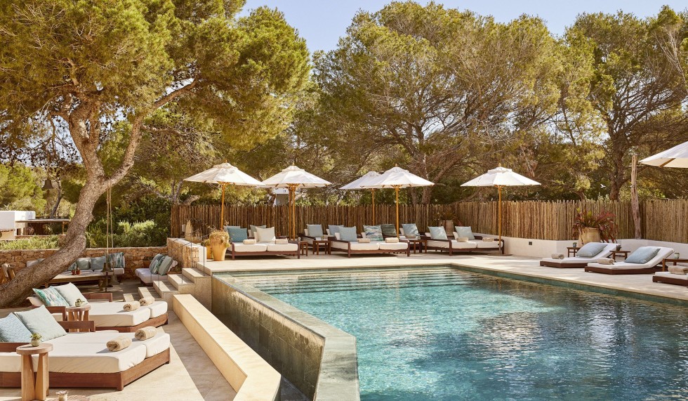 Built low among pine trees and wild grasses, Teranka feels like it belongs to the island of Formentera rather than being borrowed from elsewhere. The hotel is divided into three distinct areas – Mar, Tierra and Cielo – each taking its name from what it faces: the sea, the land or the sky. This layout gives the 35-room property a natural sense of variety, allowing the atmosphere to shift in tone as you move through it.